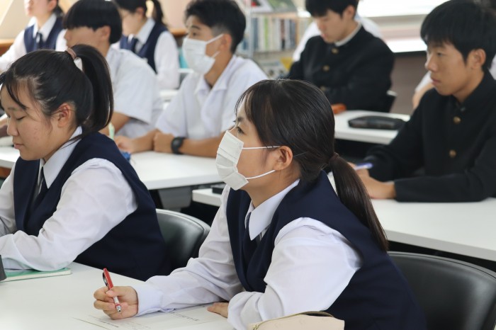 10月23日(木)に奈留薬局の山本先生をお招きして、薬物乱用防止講話を実施しました。今回は、違法薬物の恐ろしさを詳しく知ることができました。また、山本先生のタイでの話など、生徒が興味を引くような話で真剣に楽しく学ぶことができました。生徒一人ひとりが正しい知識を身に付ける貴重な時間となりました。山本先生、ありがとうございました。
