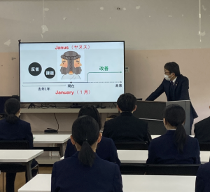 訓話では、Januaryの語源となったローマの神Janus(ヤヌス)が紹介され、過去を振り返り未来に目を向けることの大切さが語られ、それぞれ新しい学年や進路について心を新たに考えました(と思います)。