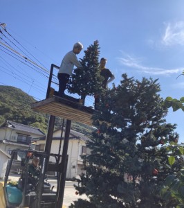 11月16日(日)に、奈留支所前のイルミネーションとクリスマスツリー設置のボランティア作業に生徒・職員あわせて16名で参加しました。
