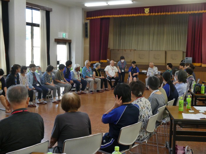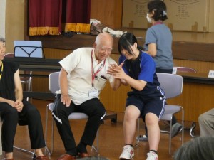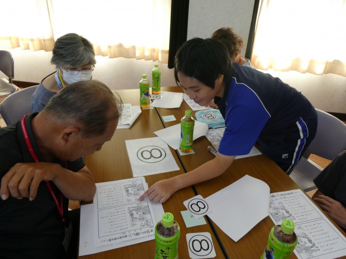 最初は不安な顔を覗かせていた生徒も、参加者の方々が積極的に話しかけてくださったおかげで、徐々に打ち解け、間違い探し、ひらがな並び替え、ルービック、漢字穴埋めクイズ、トンチ文字などの活動を通して、親睦を深めました。最後に全員で「サライ」を合唱し、お互いに満足した表情で会を終えました。
