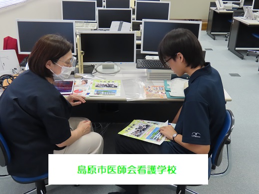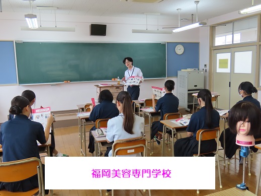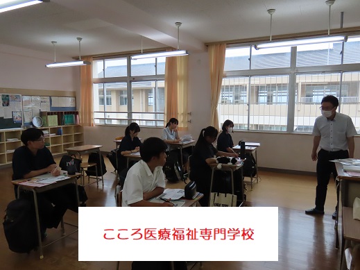 本校に9つの学校の方々がおいでになり、生徒にそれぞれの学校の魅力や進路先について説明してくださいました。中にはテーピングの巻き方や礼法、プログラミング、カットなどの実技も交えた説明もあり、大変わかりやすい内容にしていただきました