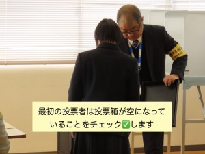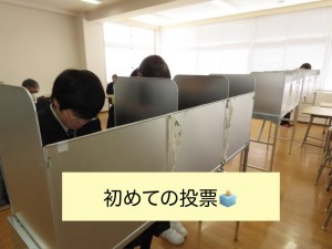 生徒会選挙で選挙管理委員会からお借りした投票台を用いた投票は行ったことはありましたが、公職にかかる選挙は当然今回が初めてなので、緊張した面持ちで投票所に入りました。しっかり考えながら静かに落ち着いて用紙に書き込んでいました。