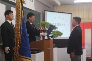 校長先生から今年度の卒業生4名一人ずつに卒業証書が手渡されました。