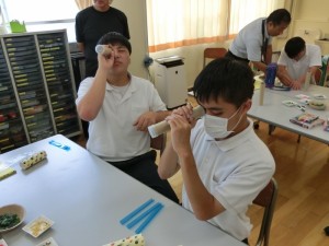 ワークショップでは、マイクロプラスチックやシーグラスを使って万華鏡を作りました。