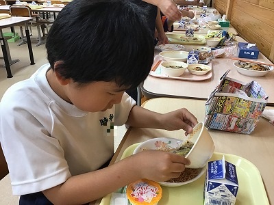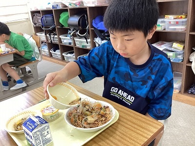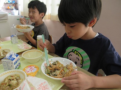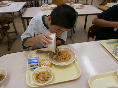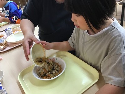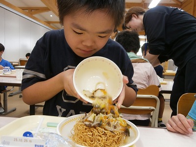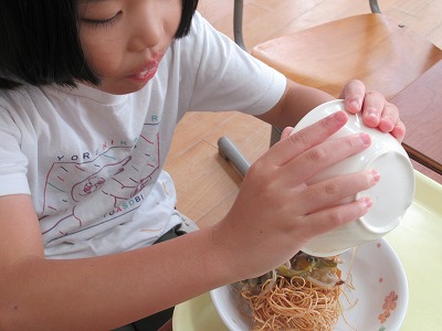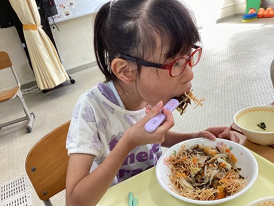 皿うどんを作る工程の一つを学びながら、自分で完成させた皿うどんをおいしくいただきました。