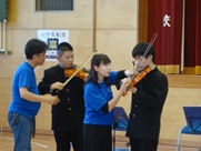 長崎OMURA室内合奏団の方々が来てくださり、「トルコ行進曲」や「ルパン三世のテーマ」等の曲を鑑賞しました。