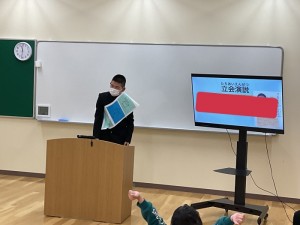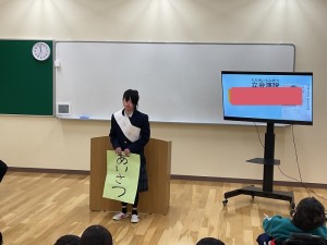 中学部から会長、副会長に1名ずつ立候補し、1週間の選挙活動や立会演説を行い、児童生徒に投票を呼びかけました。