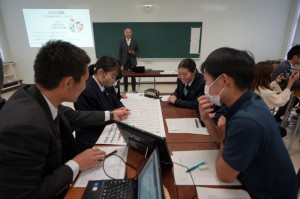 2時間連続の授業のうち、1時間目に人生設計の在り方等について説明を受けた後、設定された仮想家族に対して4人又は5人のグループに分かれて親の立場からその家族の将来設計を話し合ってイベントプランニングを作成し、その収支結果・改善策の検討を2時間目に各班に配置された講師(ライフプランナー)の方々の助言及び支援を受けながら行い、最終的には各グループの取組及び作成上の留意点等について共有しました。