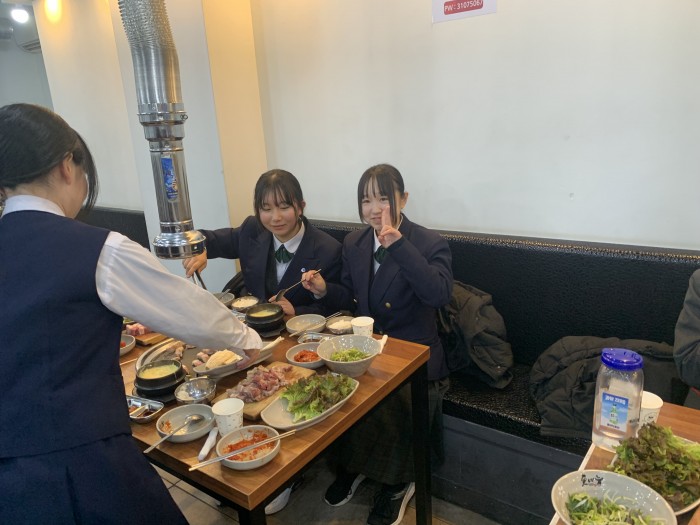 こちらは他校の生徒と一緒に食卓を囲みます。
