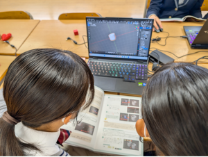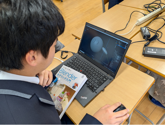 令和7年12月17日(水)、1年生プレまつナビの時間に、松浦市・松浦高校のオリジナルキーホルダーづくりをテーマに探究活動を計画している生徒向けに、3Dプリンタを活用するための3Dモデリングの授業を行いました。松浦高校では、3DCGソフトウェアとして「Blender」を活用しています。初めての取り組みとなるため、基本操作に慣れながら、初級レベルのモデリングに取り組みました。