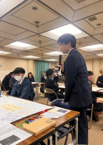 このワークショップは、活性化企業人として松浦市役所に勤務されている中村さんを講師として、ドローンを活用した仕事紹介や行政の立場で、民間とどのように連携してドローンを活用していくかなど、市役所各課職員と高校生とで、ブレーンストーミング形式で意見交換していきました。