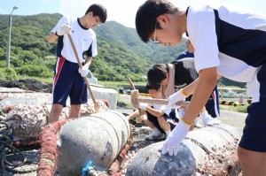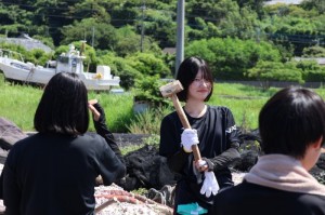 今回は「漁業体験」で、フジツボ取りをおこないました。漁業は「魚を獲る」というイメージが強いですが、魚を獲るための準備等も大切だということを学ぶことができました。講師の川上様には、暑い中ご指導をいただきました。ありがとうございました。