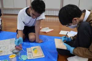 今回は、菜園管理(野菜の苗植え)を行う予定でしたが、悪天候のため予定を変更し、看板づくりをおこないました。 南高では、毎年4月に近くの田んぼで田植えを行います。その田んぼに掲げる看板を作成しました。また、南高菜園で育てる予定の野菜の看板も作りました。