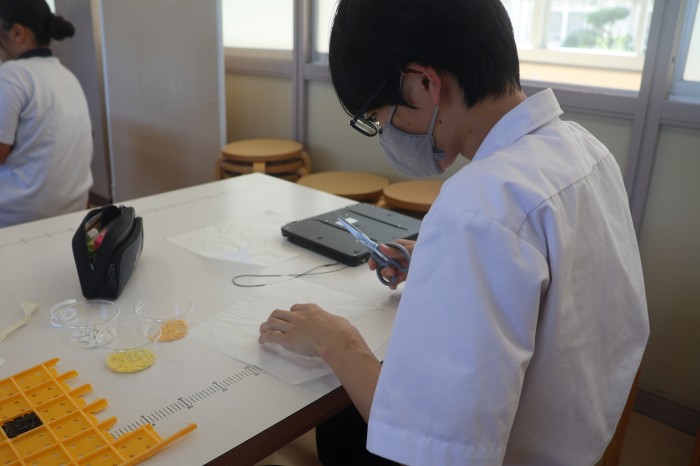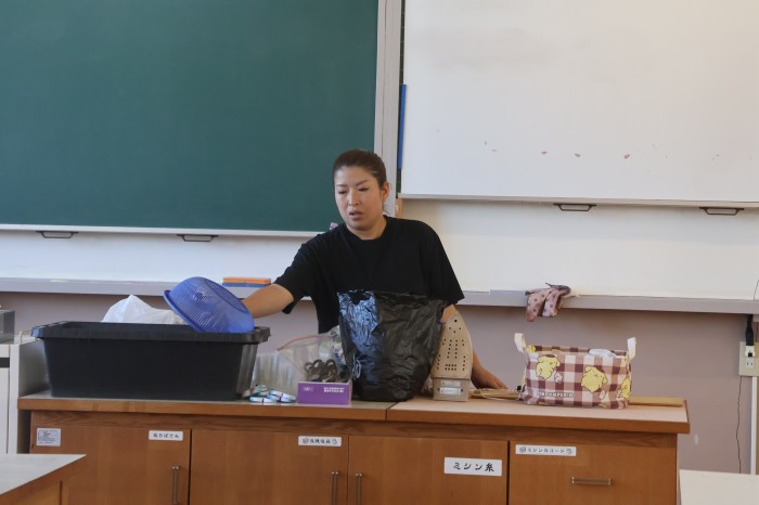 今回は、漂着物調査の一環で、前回海岸で回収した漂着物を用いてアップサイクルをおこないました。講師の山口和先生のご指導のもと、プラスチックを刻むところから、キーホルダーなどを完成させるところまで集中して取り組みました。