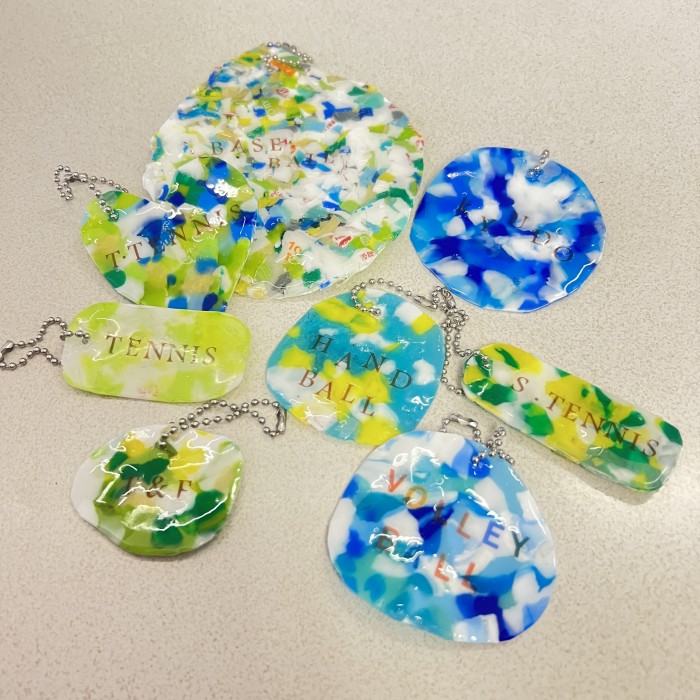 「ペットボトルキャップをリサイクルしたキーホルダー」です!