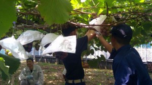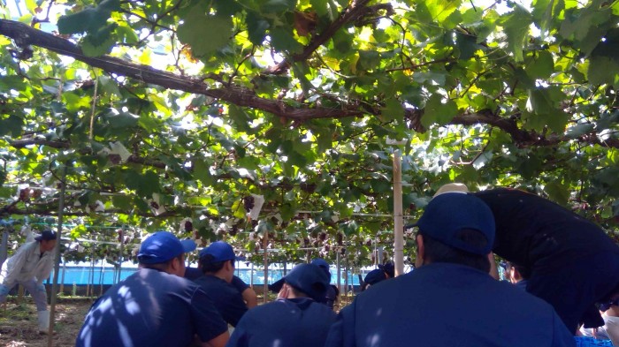 今回は本校生徒3A果樹部門の生徒が、ブドウの収穫などを一緒に行ないました。