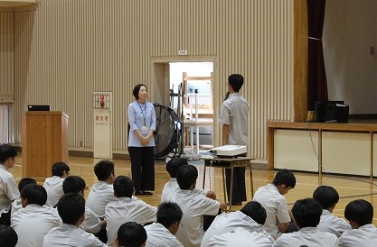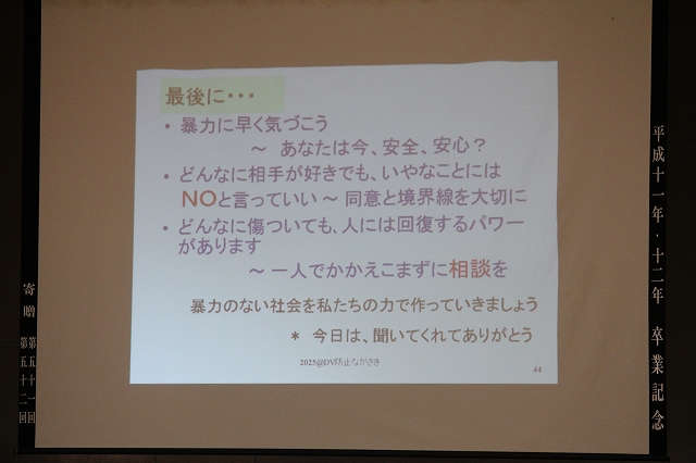 令和7年10月17日(金)に本校の体育館で「デートDV予防講座」を実施しました。