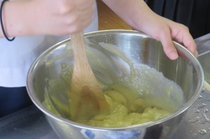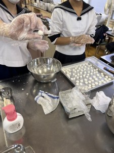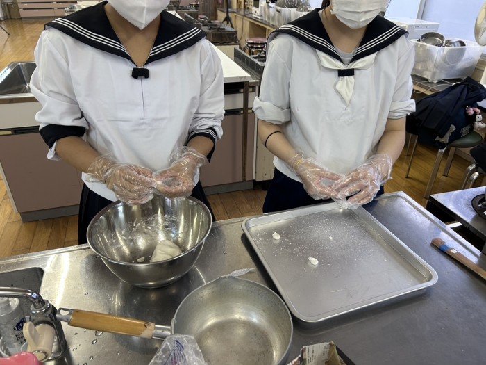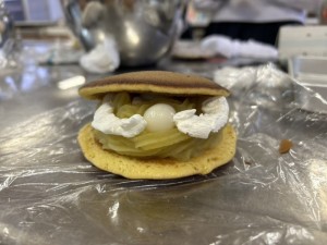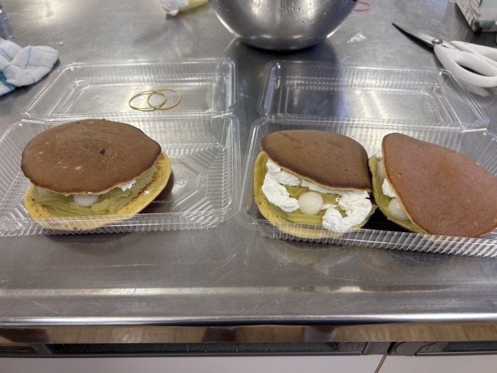 地域の特産物を使った「かんドラ(どら焼き)」の商品開発に向けて、地元菓子店と協力し、試作に取り組んでいます。