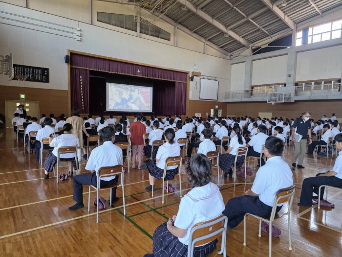 全校生徒で視聴しました。相撲部のエゴール・チュグン君と高橋修相撲部監督の「弓取り方」があまりにも