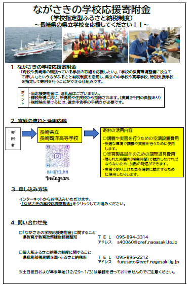 学校を指定してふるさと納税の寄附ができる、「ながさきの学校応援寄附金」制度が創設されました。