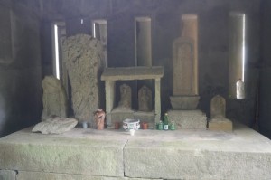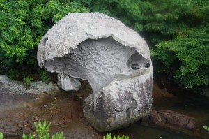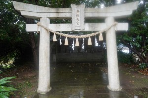 こちらは海童神社。ナガスクジラの顎の骨でできた鳥居があります。