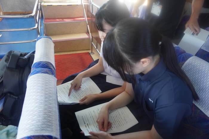 歴史・文化班の前田さんと山田さんがガイドの練習をしているところです。