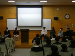 2/20(金) 「進路を語る」の時間では、進路が決定した3年次生が、下級生に進路活動についての