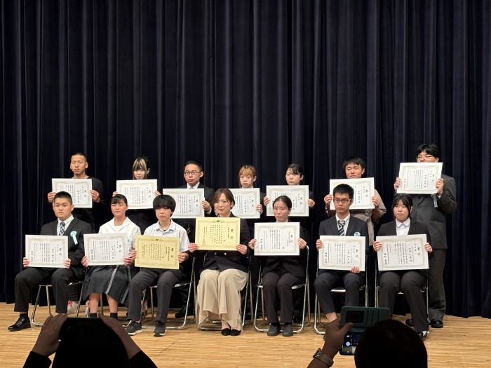 令和7年10月5日(日)佐世保市コミュニティセンターホールで今年度の生徒生活体験発表大会が行われました。県内の定時制及び通信制高校の各校代表生徒15名が大会に参加しました。本校からは、大町君(4年工業技術科)が「昔の自分と今の自分」について発表し、優秀賞を受賞しました。
