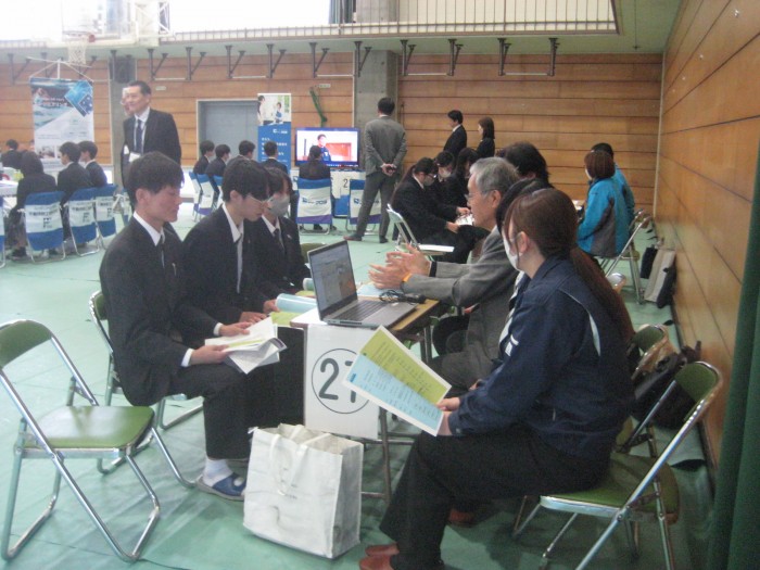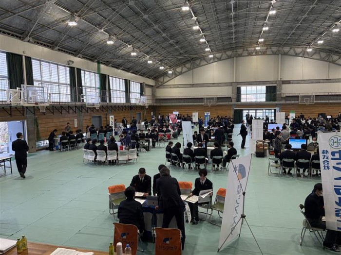令和8年3月11日(水)全日制の県内企業説明会に3年生が参加しました。説明会参加企業56社の中から、希望する企業・職種等に関係する企業から説明を受けました。4月からの進路実現へ向けて貴重な説明会となりました。