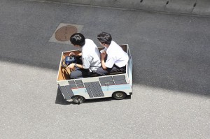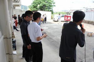 体育館に集まってもらった参加者は、各班に分かれて案内係が先導して各科のブースを周りました。各科、思考を凝らしたビデオやプレゼン、作品展示や体験など様々な特色を紹介していました。