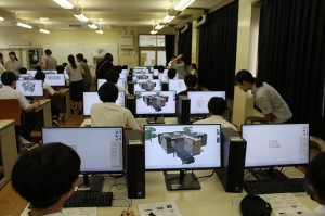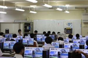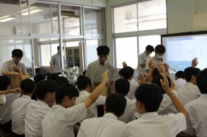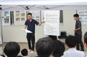 中学生たちは、各科のプレゼンや作品の展示説明、体験など真剣に、そして、楽しそうに見学をしていました。