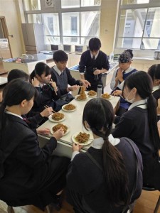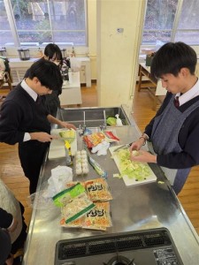 福祉系列3年生は調理実習室にて、3グループに分かれてそれぞれ好きなものを作る実習をしました。