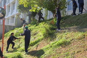 10月17日(金)除草作業を実施しました。夏の間に校舎周りに草が生い茂っていましたが、1,2年生の他、保護者のみなさまや同窓会の方々のご協力をいただき校舎周りが綺麗になりました。ご協力ありがとうございました。