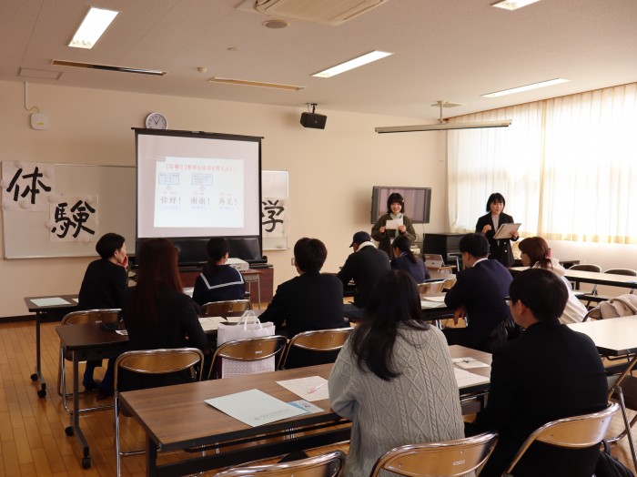 ▲中国語授業体験では、中国語で自己紹介をおこないました。