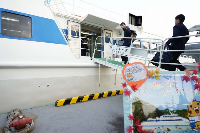 一行は、陽の光が差し始めた7時35分頃に職員に見送られながら高速船に乗り込み、7時45分に長崎港に向け出航しました。