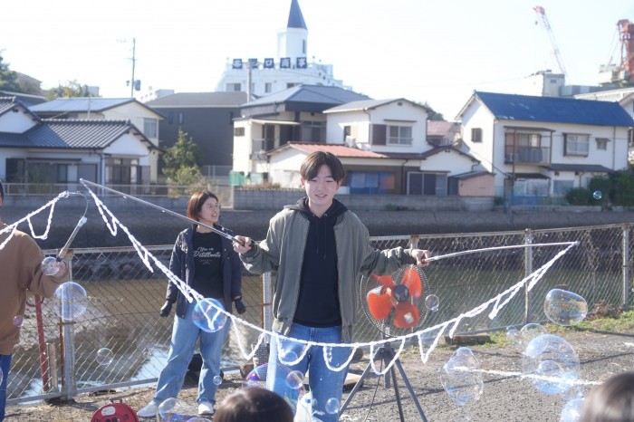 ボランティア部1年生が「シャボン玉パフォーマンス」で参加しました。