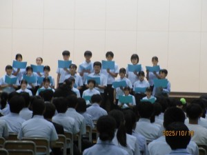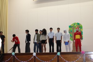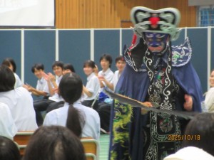 2日目のプログラムは、合唱、吹奏楽部演奏、鶴南分校の発表、2年生各クラスの劇、変面ショー、展示の鑑賞でした。
