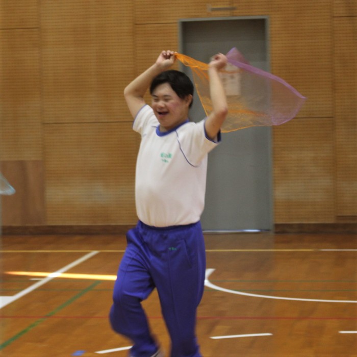 午前中は曲に合わせてダンスを踊り、午後はハンカチやリボンを使って身体表現をしました。