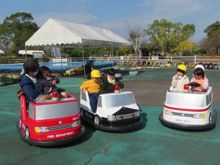 お弁当を食べた後は、友達や先生たちと一緒に乗り物にのって大満足の1日となりました。