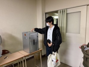 その後、実際の選挙で使われる選挙台で投票用紙に記入し、投票が行われました。
