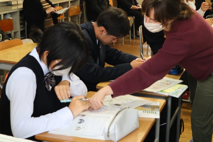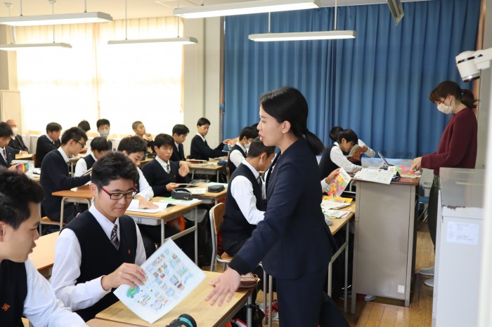 本日は、英語による道案内の練習をしました。はじめは緊張していた生徒の皆さんも、ペア活動を通して楽しく学ぶことができていました。