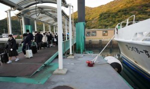 一行は、陽の光が差し始めた7時35分頃に職員に見送られながら高速船に乗り込み、7時45分に長崎港に向け出航しました。